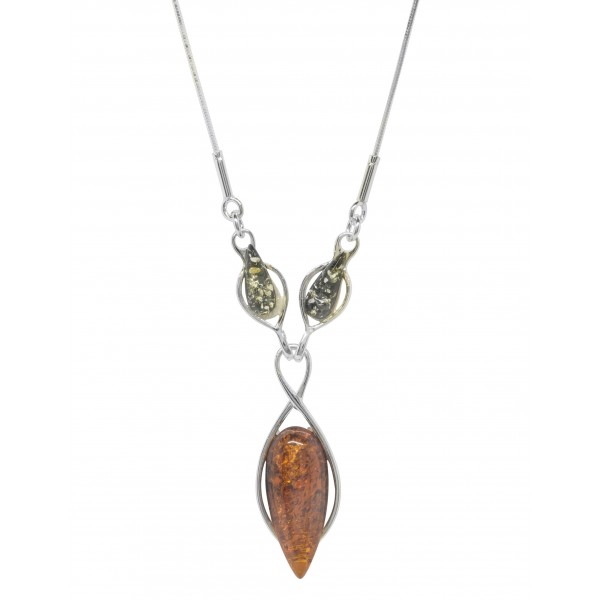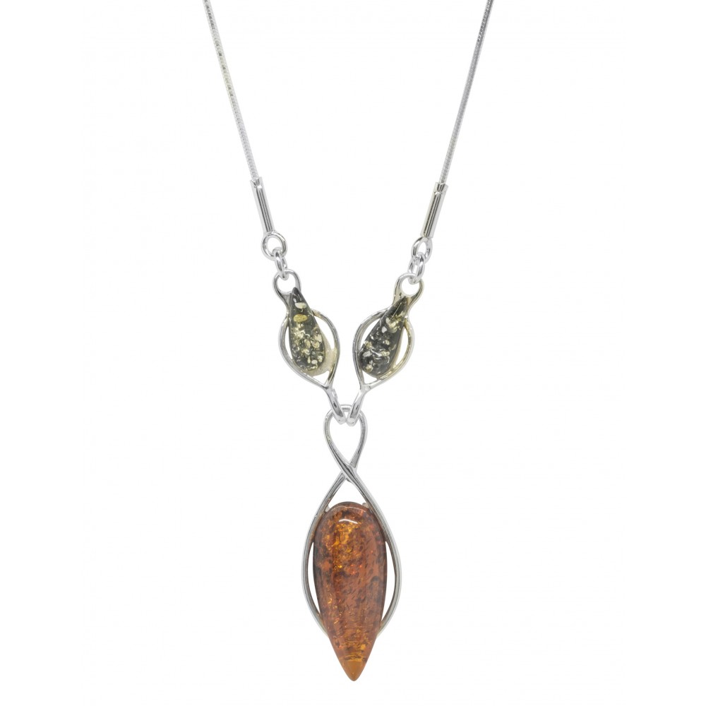 Silver 925/1000 necklace and amber stone shaped like a drop of water. Available in several amber colors.