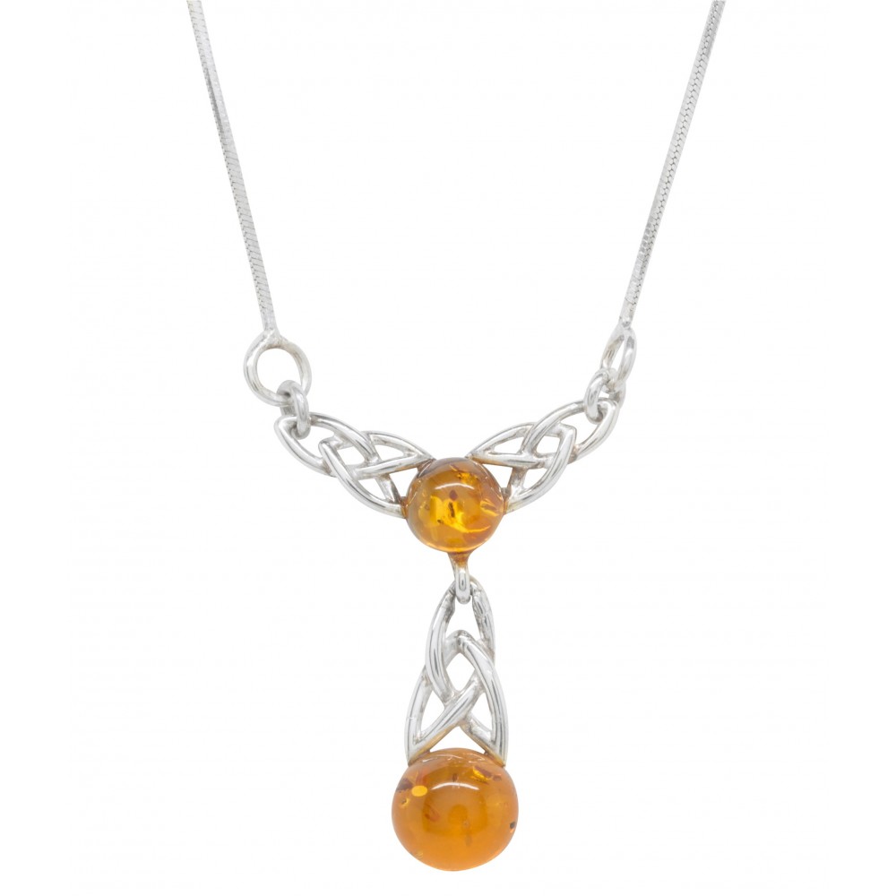 Silver necklace 925/1000 with 2 natural amber stones./ P>