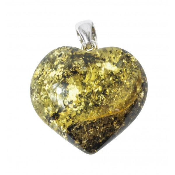 Très rare coeur en ambre vert et Argent.