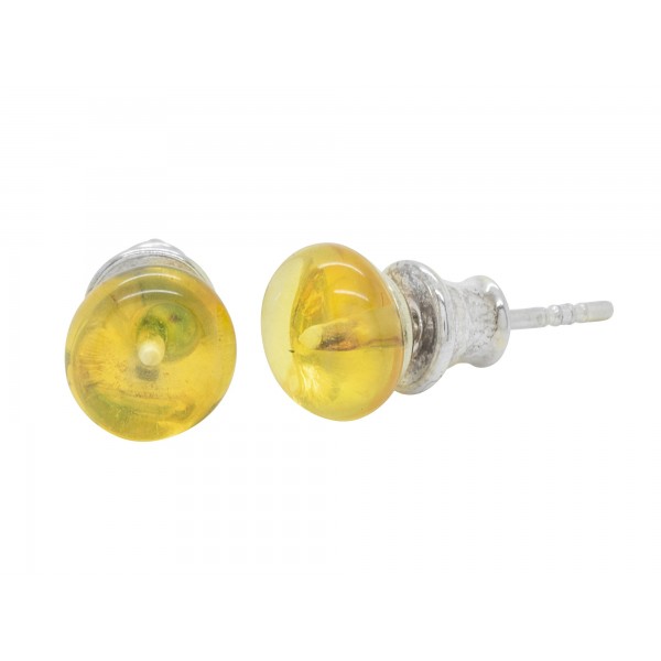 Orecchino colorato limone sfera naturale forma ambra e stelo in argento 925/1000.