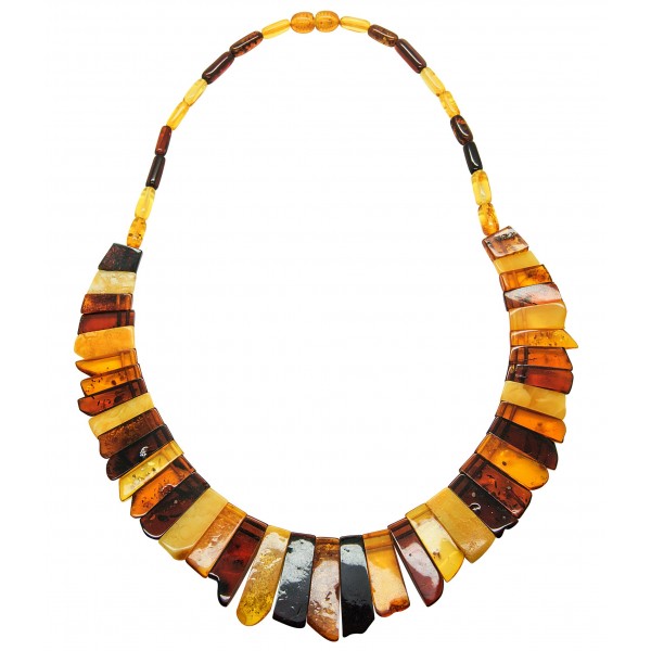 Ambra in tutto il suo splendore in questo insieme colorato di giallo miele, cognac e ciliegia. Questa collana si chiederà al collo.
