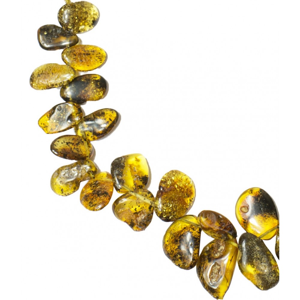 Bella donna collana di ambra composta da petali ambra verde. Una collana piena di sole.