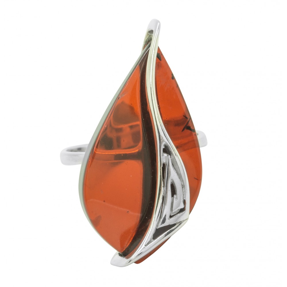 925/1000 anello d'argento con un vero e proprio colore ambrato noccioli di ciliegia. Questo bellissimo anello non passerà inosservata sulla vostra mano.