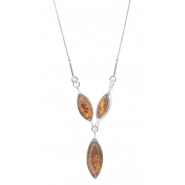 Collana in argento 925/1000 e ambra pietra a forma di goccia. Disponibile in color ambra.