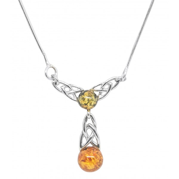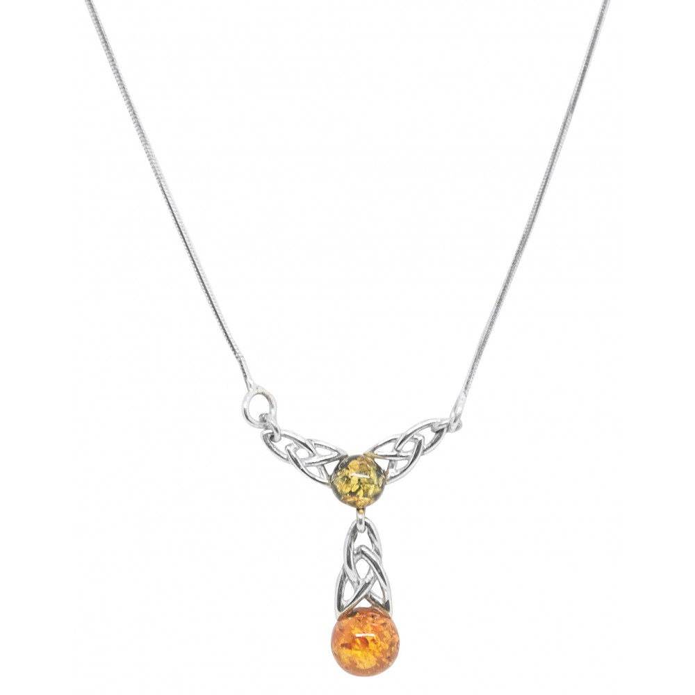 Collana in argento 925/1000 accompagnati da 2 pietre d'ambra naturali. P>