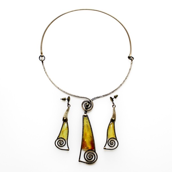 Finery di ambra naturale e artigianale in acciaio spazzolato.