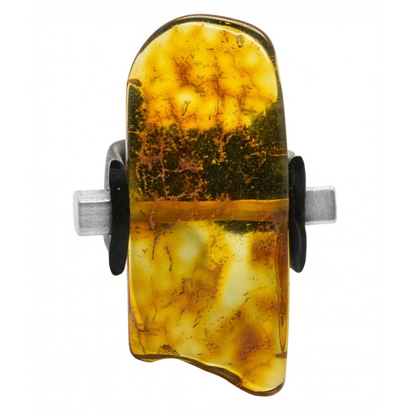 Un anello con effetti molto naturali di forma irregolare e colore del miele, questo anello non passerà inosservata. Esso è montato su un cinturino in silicone che è possibile regolare al dito