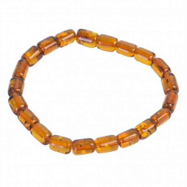 Bracciali naturale colore ambrato miele con perline di tipo cilindrico su elastico.
