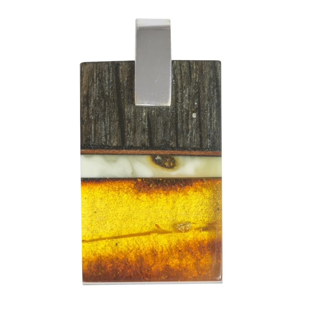 Grande legno pregiato ciondolo con argento e bianco genuina ambra baltica e miele.