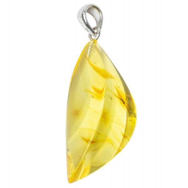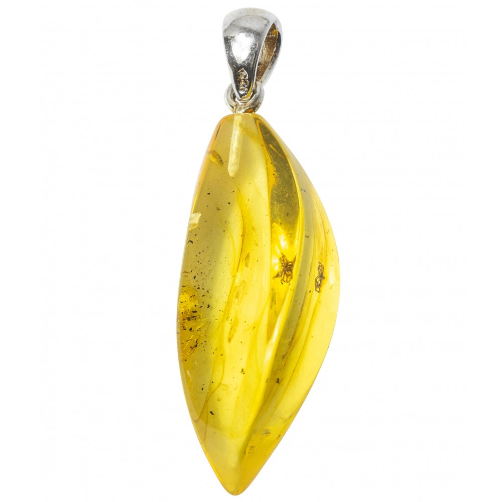 Aggiungete un po 'storie intorno al collo con questo ciondolo genuino ambra baltica color miele con 2 inclusioni di insetti. Hook in argento. P>