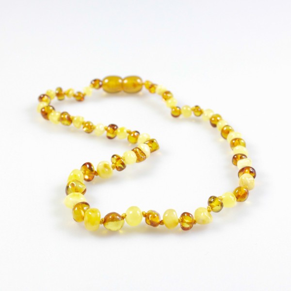 collana bambino ambra realizzati con perline ambra rotonde di bianco e miele. Ogni perlina ambra e separati da un nodo per fissarlo.