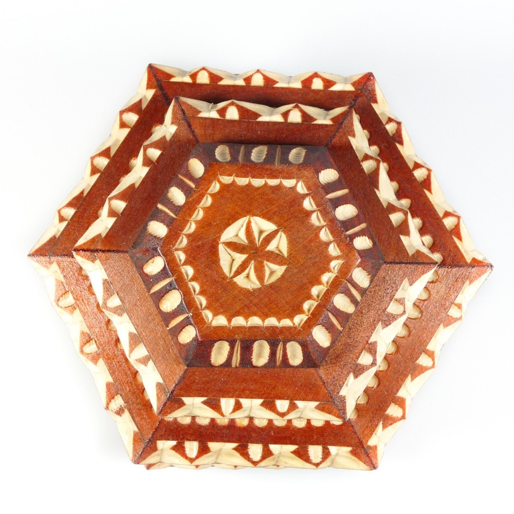 contenitore di monili di legno intagliato bi-colore, fatto a mano.