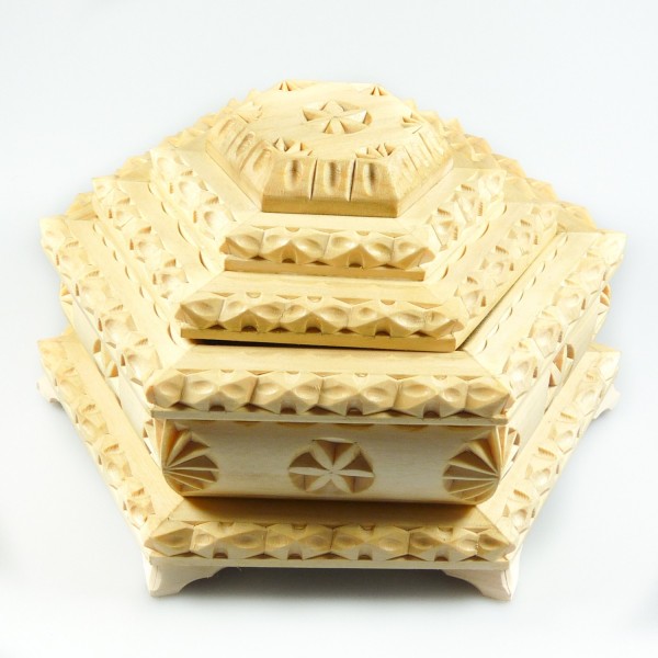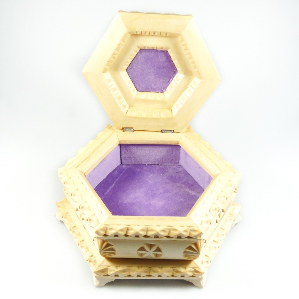 Contenitore di monili di legno naturale, fatti a mano con legno intagliato.