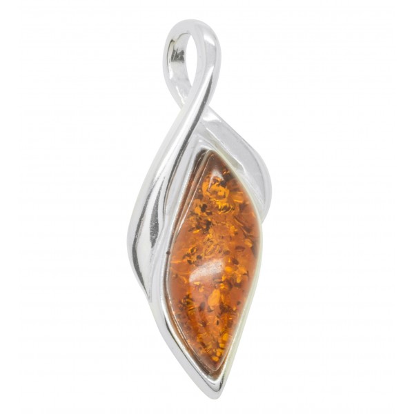 Pendentif en ambre naturel couleur cognac fabriqué à base d'argent 925/1000.