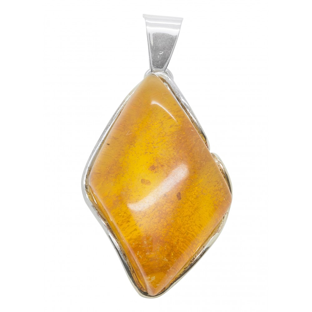 Gros pendentif en ambre miel naturel taillé avec un crochet en argent. Pièce unique.